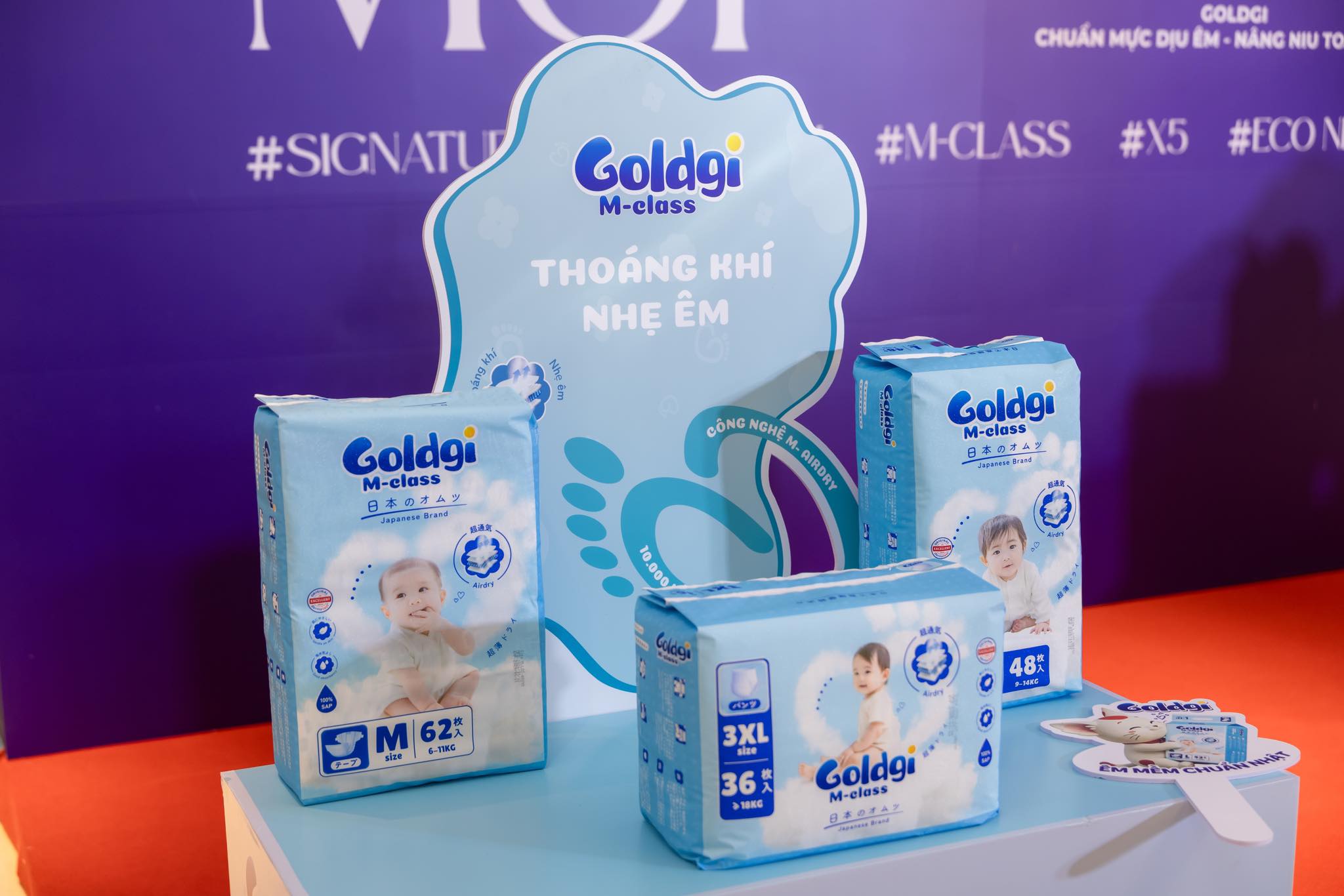 Tâm điểm của Sự kiện là lễ ra mắt sản phẩm Goldgi SIGNATURE – dòng bỉm Nhật cao cấp thế hệ mới, được nghiên cứu và phát triển dựa trên triết lý chăm sóc trẻ em đề cao sự an toàn, tinh tế và trải nghiệm cảm xúc. Đây là dòng sản phẩm đại diện cho phân khúc cao cấp nhất của Goldgi, hướng đến các gia đình hiện đại với yêu cầu ngày càng khắt khe trong việc lựa chọn sản phẩm chăm sóc cho trẻ nhỏ.